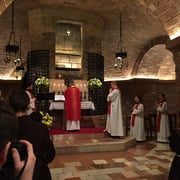 Të martën kremtuam Meshën e shenjtë në Porcijunkula, një kishë që Ati ynë Serafik e donte veçanërisht. Mesha u udhëhoq nga organizuesi i këtij pelegrinazhi nga Hercegovina fra Stanko Mabiq. Pas Meshës, kishim mjaft kohë për të vizituar dhe parë bazilikën e madhe të Marisë së Engjëjve. Pasdite, në heshtje shkuam në Carceri ku ndodhen shpellat e fretërve të parë ku ata luteshin. Ne përfunduam ditën me adhurimin e të Shenjtërueshmit në kishën e shën Damianit.