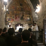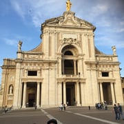 Ne arritëm në Assisi të dielën pasdite ku aty jemi bashkuar me novicët e Bosnjes. Pasi u sistemuam në hotelin Casa Leonori, ne u drejtuam në destinacionin e parë të pelegrinazhit tonë, në Kishën e Shën Damianit, vendi i kthimit të Françeskut dhe ndryshimi i jetës së tij. Atje, u kremtua mesha e shenjt nga mësuesi i noviciatit Shqiptar, fra Marko Ešegović. Në fund të ditës, të dielën në mbrëmje, në gjuhen italiane, kemi lutur Mbrëmësorjen në bazilikën e Maris së Engjëjve, ku ndodhet Porcijunkula.