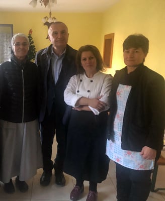 U prit nga famullitari fra Ndue Toplana e nga zv. famullitari fra Sokol Pepushaj, të cilët e shoqëruan në kishë, në kuvend e në çadër ku banojnë disa familje që u janë prishur banesat. Të pranishëm ishin edhe disa banorë të çadrës para kishës, motrat e Dashurisë Hyjnore që shërbejnë në famulli e në mensë, vullnetarët, si edhe me konstatuesit zonal të gjendjes pas tërmetit etj.