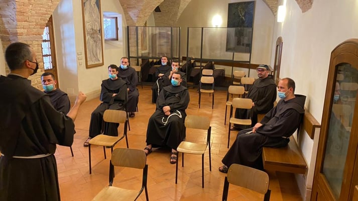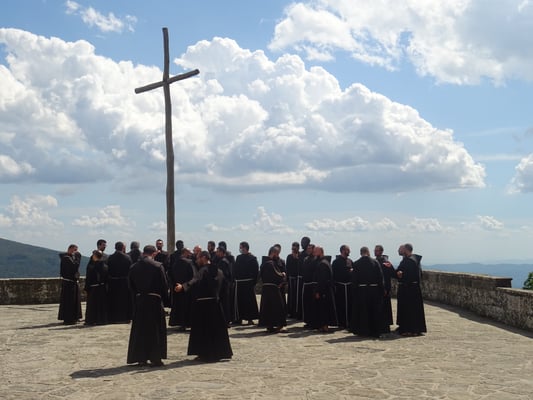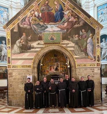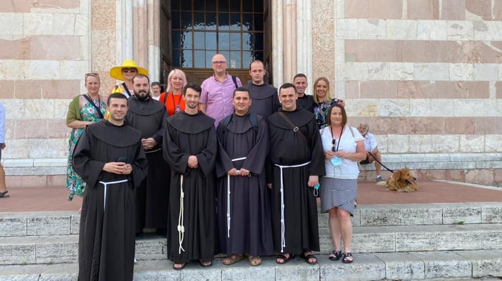 Një element i rëndësishëm që ndihmon në pasjen e një panorame më të plotë të identitetit të personit është njohja e rrënjëve të veta. Kur bëhet fjalë për ata që bëjnë pjesë në urdhra ose kongregata të ndryshme, një pjesë e kësaj njohjeje lidhet pikërisht me vetë jetën dhe veprën e themeluesit ose themelueses të cilët, ndonëse kanë ofruar dhe përqafuar forma të ndryshme jetese, gjithmonë rrugëtimi i tyre ka pasur të njëjtin drejtim. Njëra prej këtyre mënyrave të jetesës, e cila që në fillimet e saj ka mbledhur në gjirin e saj shumë ndjekës, është ajo e krijuar nga shën Françesku i Asizit. Rrugëtimi i tij, ashtu siç i çdo shenjti tjetër, ka kaluar nëpër disa momente kyçe, të cilat kanë lënë shenjë të pashlyeshme në jetën e tij. Fretërit me kushte të përkohshme të Provincës Françeskane Shqiptare kanë zhvilluar një udhëtim, itinerari i të cilit ka qenë kronologjikisht i ngjashëm me atë të rrugëtimit të shën Françeskut. Ky udhëtim i zhvilluar në formën e një peligrinazhi u ka dhënë mundësinë fretërve të vizitojnë vendet kryesore nëpër të cilat ka kaluar shën Françesku. Së bashku me fretërit e sipërpërmendur ka qenë mësuesi i tyre fra Nuncio Catania dhe guardiani i kuvendit të Shën Françeskut në Gjuhadol fra Gazmend Tinaj.