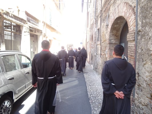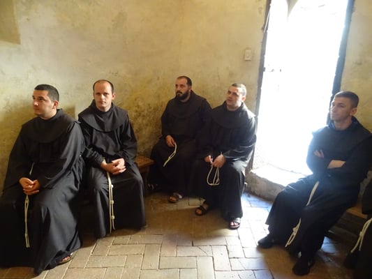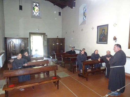 Ditën e hënë paradite fretërit kanë vizituar pikat më të rëndësishme të qytetit të Asizit. Ndër më kryesoret mund të përmendim: Bazilikën e Shën Kjarës, Kishën e re (e cila është ngritur në vendin ku tradita thotë se është rritur shën Françesku), Katedralen e Shën Rufinit dhe Bazilikën e Shën Françeskut, ku dhe pushon trupi i tij. Ndërsa pasdite fretërit kanë vizituar shenjtëroren e Shën Damianit, për të cilën Burimet françeskane përshkruajnë episodin kur Kryqi i Shën Damianit i flet shën Françeskut dhe i kërkon të shkojë e ta rindërtojë Kishën, e cila po rrënohet.